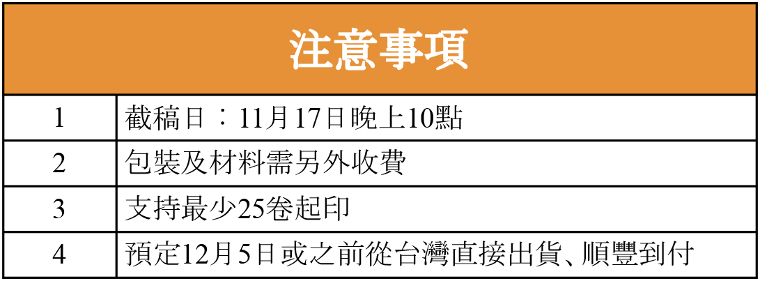 ※ 期間仍接受一般訂單下印,詳情請參照↓