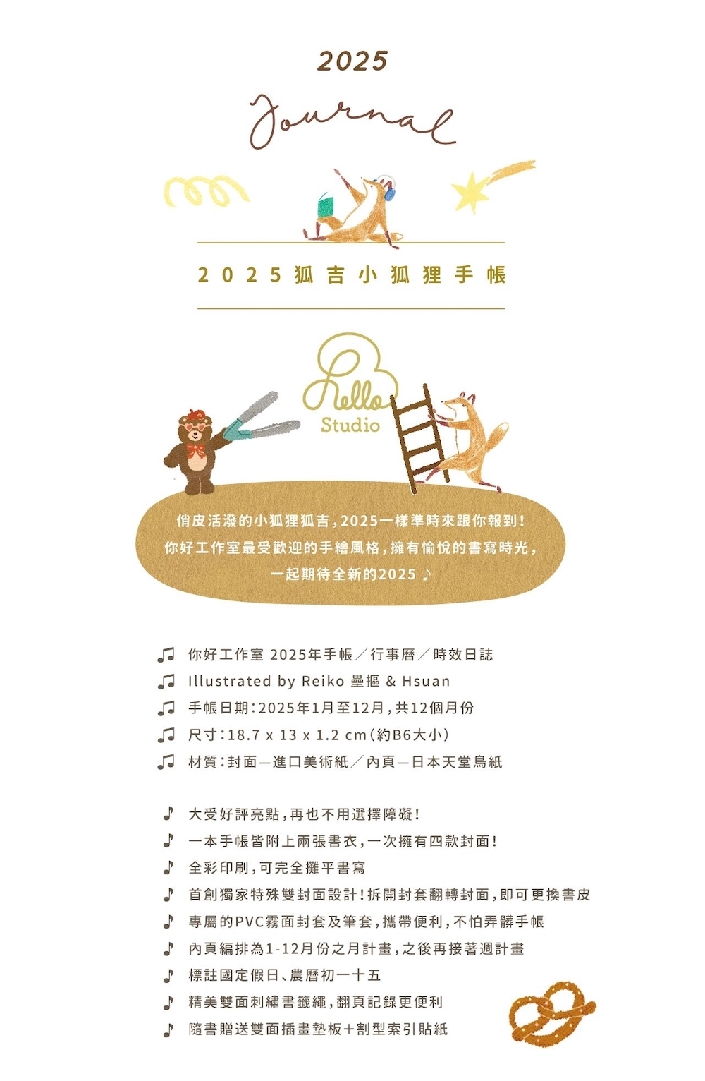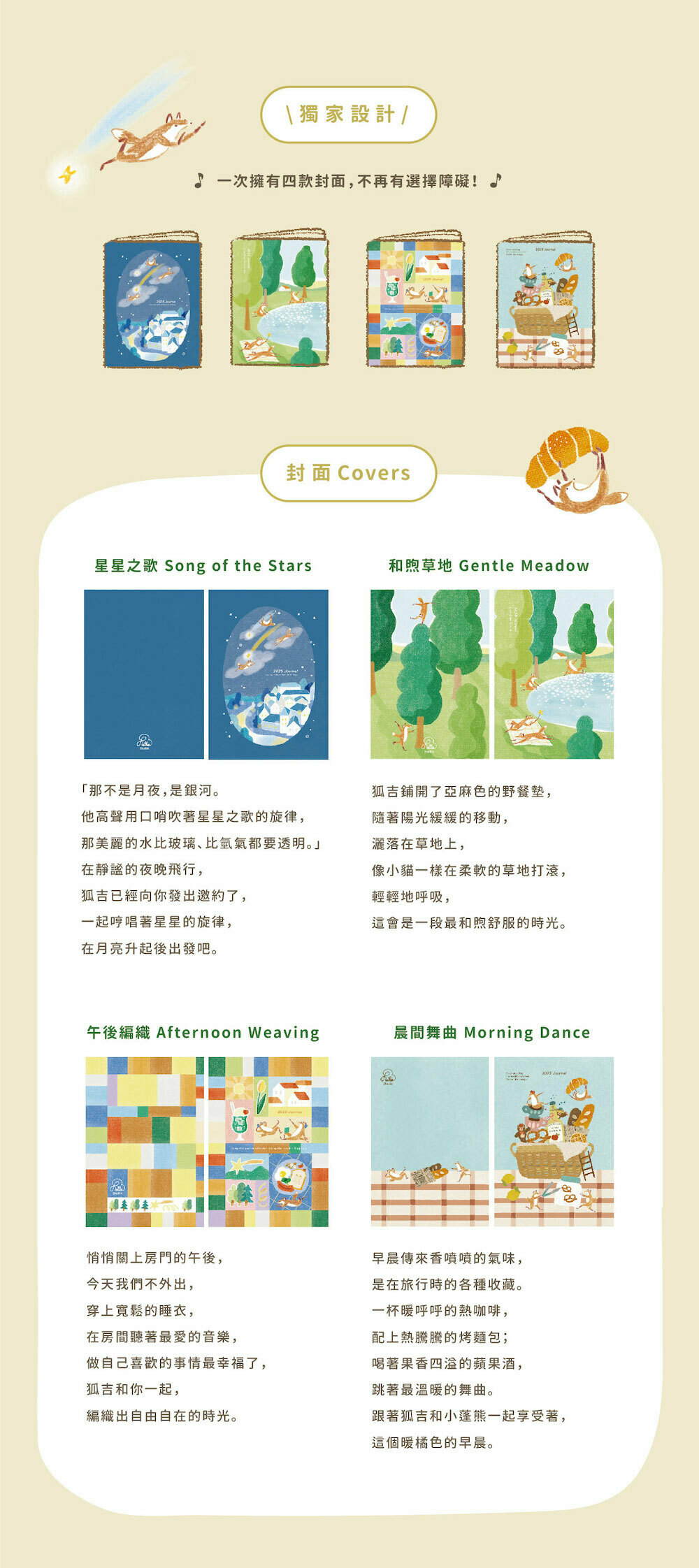 2025 狐吉小狐狸手帳 (B6)|星星之歌/和煦草地/星星之歌/午後編織/晨間舞曲