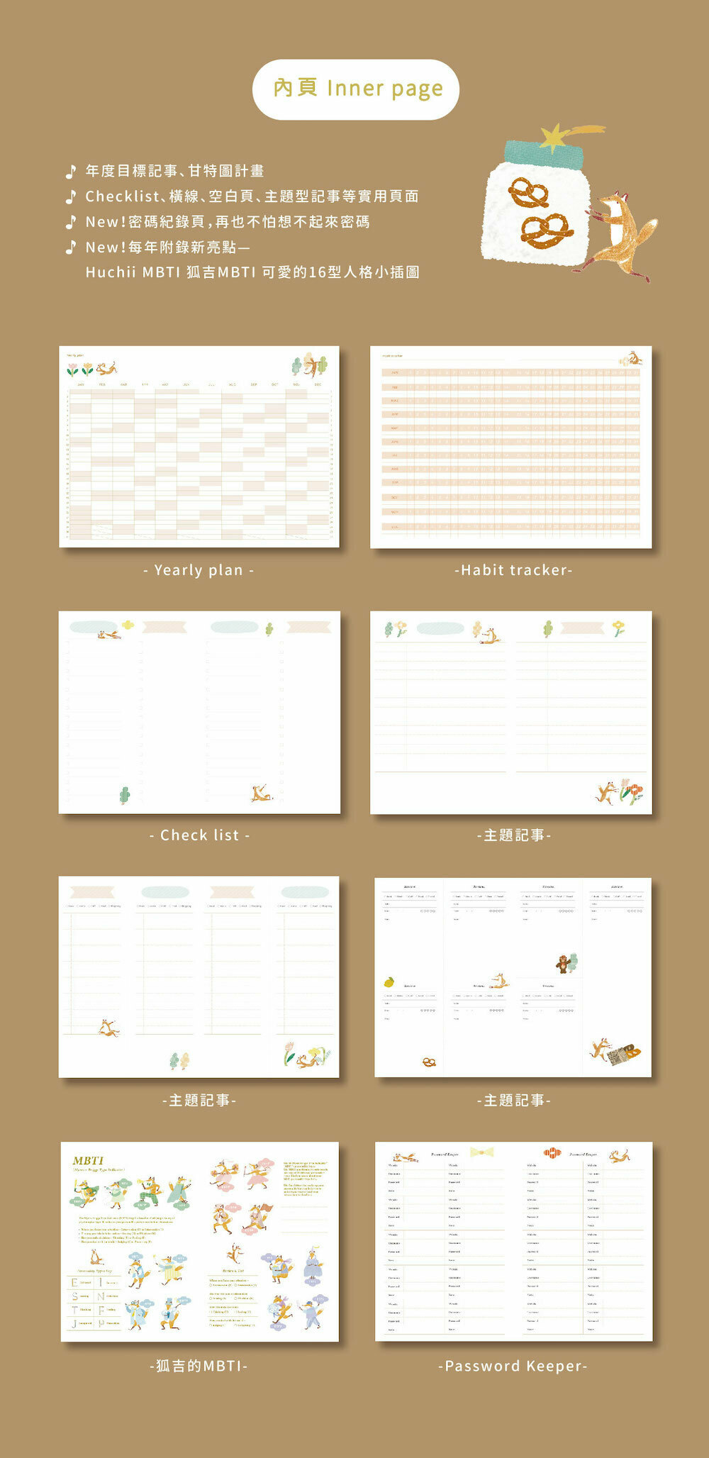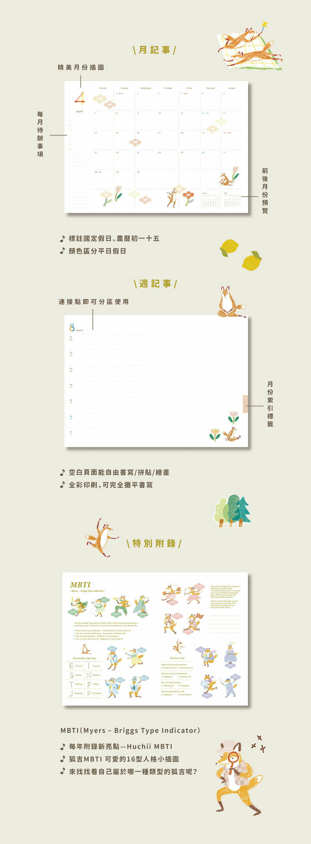 ◇ New!每年附錄新亮點—Huchii MBTI 狐吉MBTI 可愛的16型人格小插圖
